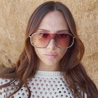 Óculos de sol Indianápolis - Luxury Series - Prata - Lente pêssego